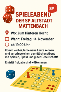 Der Vorstand SP Altstadt Mattenbach organisiert einen Spieleabend im Hinteren Hecht.